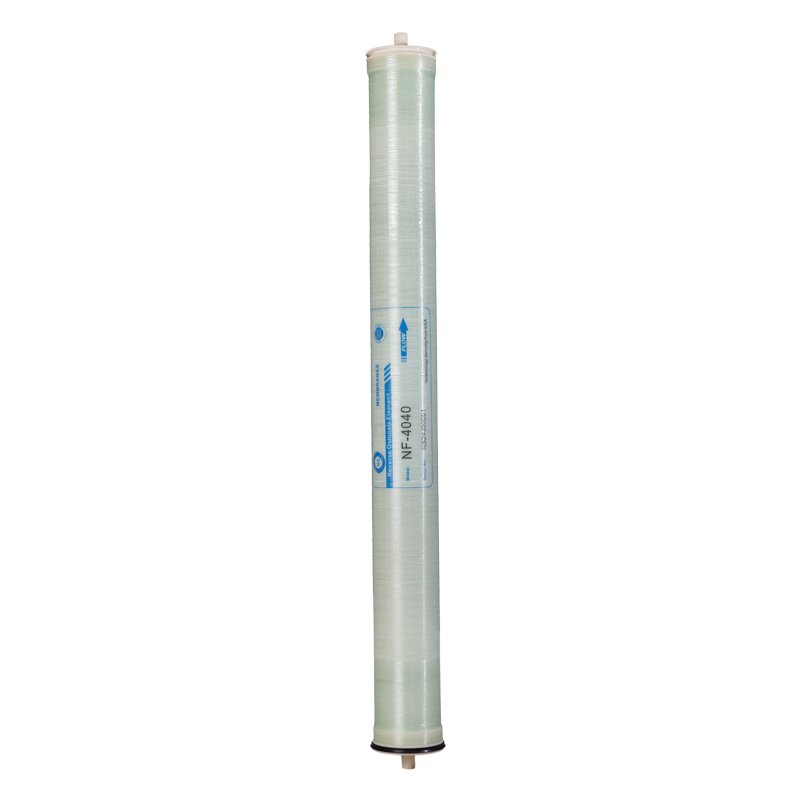 聚哌嗪复合纳滤膜元件,具有选择分离特性。能去除水或溶液中的几乎全部细菌、病毒、微生物和大分子有机物,对抗生素、杀虫剂、农药、重金属和大部分二价及以上离子有较高脱除率,而保留部分钠、钾、钙、镁、偏硅酸等有益的营养矿物质及小分子物质。