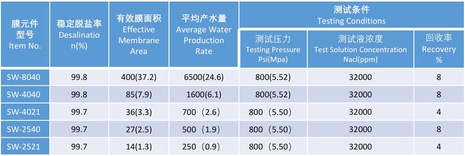 海水淡化系列膜元件,通过分离层精准控制,实现脱盐率与产水量的性能平衡,优化膜元件构型设计,提高组件承压能力。具有性能稳定、低压节能、规格齐全的特点。